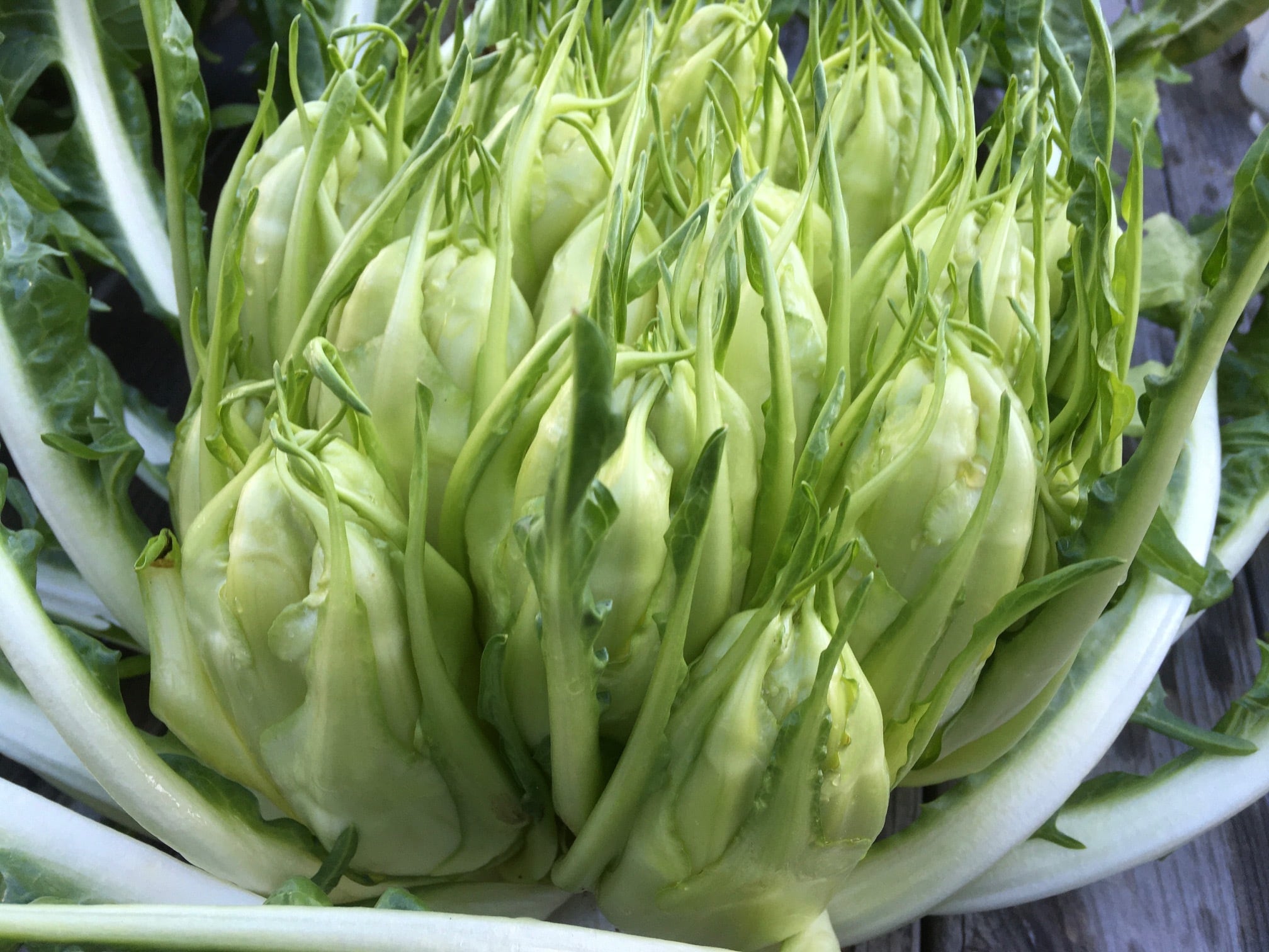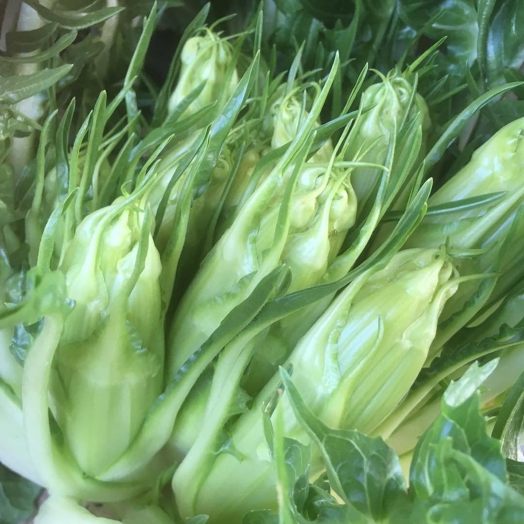 新芽を細かく割いてアンチョビサラダでいただくのが定番です。